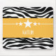 Trendy e moderno Sassy Star Zebra Mousepad com um fundo de impressão em preto-e-branco e uma borda amarela arrojada adornada com um divertido motivo de estrela. Este design feminino pode ser personalizado com o texto personalizado de sua escolha. Clique em "Personalizar" para encontrar mais opções de personalização.