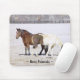 Uma fotografia de dois belos cavalos numa manhã gelada com as palavras "Melhores Amigos", mostradas num Mousepad de qualidade.