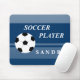 Design de jogador de futebol com uma bola de futebol. Para alterar a cor de fundo nesses mousepads de futebol personalizados, clique no botão "Personalizar", em seguida clique em "Editar">"Fundo" e selecione uma cor.