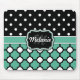 Padrão elegante de latência azul claro, preto e branco e padrão de bolinhas. Este presente de moda apresenta uma placa de nome preto, azul e branco para o seu nome e monograma personalizáveis. Isso daria um legal presente de aniversário para meninas ou presente de Natal para ela.