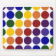 As bolinhas coloridas arco-íris são arranjadas nas fileiras em um fundo branco. O offset enfileira diagonais do formulário de cada cor: violeta, índigo, azul, verde, amarelo, laranja, e vermelho.