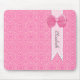 Um mousepad de cor damasco rosa-medalhão, feminino, com uma fita rosa-giro atada em um arco giro. Personalize este bonito design antiquado adicionando seu nome. Imagem impressa plana, não arco real.