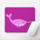 Este incrível mouse pad apresenta uma imagem de arte digital de uma bebê rosa bonito e mágica Narwhal. O corpo principal do Narwhal tem uma textura áspera e é rosa claro enquanto a barriga é um tom de rosa pálido. O Narwhal tem um olho negro com um aluno rosa pálido e uma buzina de ouro brilhante no rosto. Também tem uma cauda delicada e pantufas.