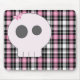 Crânio bonito com a borboleta cor-de-rosa no fundo cor-de-rosa e preto da xadrez.