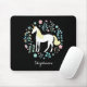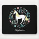 Mousepad Bonito Unicórnio e Flores Preto Personalizado
