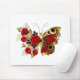 Mousepad Borboleta de flor vermelha com rosas vermelhas