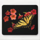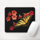 Este mousepad requintado das belas artes caracteriza uma borboleta amarela e preta de Swallowtail do tigre em flores vermelhas e cor-de-rosa de Calibrachoa.
