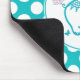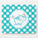 Borboleta de tartaruga e elefante para bebês e flores roxas sobre o padrão de bolinhas branca e turquesa. Modelo do mouse pad personalizável