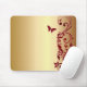 Mousepad com os ornamento elegantes da borboleta e das flores no vermelho