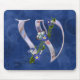 Um rico ondulou o monograma "W" textured no metal multicolorido com as corriolas azuis que enrolam em torno da esquerda da inicial, e um vôo azul e de creme colorido da borboleta dentro à terra nas flores. Este design bonito e elegante é o presente perfeito para todos os amantes da flor e da borboleta! Visite a loja para mais produtos com este design!