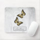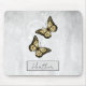 Adicione um toque elegante à sua área de trabalho do computador com um teclado de mouse personalizado com borboletas Douradas brilhantes. Design do mouse contém borboletas brilhantes que repousam em uma vinha floral branca contra um fundo de cinza. Itens adicionais disponíveis com este design também.