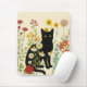 Mousepad Botanical Nature – Black Cat in Wildflower Garden