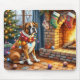 Mousepad Boxer Sitting by Fireplace with Christmas Lights