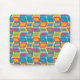 Este mouse pad tem um médio de cores brilhantes do século design, que faz retângulos arredondados com outros retângulos dentro formados por uma coleção de linhas.