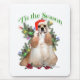 Esta é a estação com seu coqueiro espanhol. Este desenho festivo do cão apresenta um coquetel buff com pinheiro e poinsettia. Faz um presente de excelente em uma t-shirt, cartão, chaveiro, caneca e muito mais.