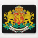 Casaco da Bulgária. O casaco de armas da Bulgária consiste num leão ouro coroado, galopado sobre um escudo vermelho escuro; acima do escudo, encontra-se a coroa histórica búlgara. O escudo é apoiado por dois leões ouros coroados de acampamento; abaixo do escudo, há um compartimento na forma de galhos de carvalho e bandas brancas com o lema nacional "Unidade dá poder" inscrito neles.