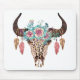 O crânio de touros fabuloso e impresso-leopardo adormecido com flores e penas cria uma bela design ocidental.