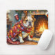 Mousepad Bulldog Sitting by Fireplace with Christmas Lights