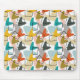 Este mouse pad tem um médio do século design de formas de bumerangue e formas de cortiça em cores retrorreflectoras.