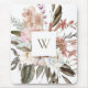 Uma natureza adorável inspirou um design com um buquê rústico de elementos florais mistos em tons neutros de bege, pêssego, rosa, esbranquiçado e terracota com folhas e caules verde-musgo. Este design único tem uma estrutura quadrada no centro rodeada por uma falsa borda de folha de ouro. O olhar é sofisticação casual com charme elegante. Personalize com o seu monograma inicial.