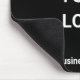 This black mousepad has a display image. You can replace the image with your business logo. A line of white display text is under the image. The text can be edited to show a custom message such as your business name. The white text is bold.