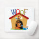 Um cachorro fofo com uma bola e um prato de comida, uma casa de cachorro, e texto colorido que lê WOOF em T-shirts, capuzes, canecas, bolsas, cartões, autocolantes, correntes-chave, botões, ímãs, conselhos de apagar a seco, capas e capas eletrônicas, placas de papel e guardanapos, e muitos outros itens de design de cães!
