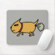 Um cão de caça comemora o prazer de compartilhar espaço com um canino flatulente. Cão divertido com arte em nuvens de peidos para o apreciável amante de cachorros.
