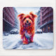 Mousepad Cachorro vermelho descendo a rua de inverno de nev