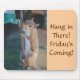 O esquilo engraçado, bonito que pendura sobre a um alimentador do pássaro é caracterizado neste divertimento "cair dentro lá, sexta-feira que vem", mousepad.