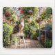 Mousepad Calico Cat on a Stool in a Greenhouse
