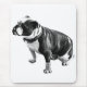 A seated bulldog that quietly steadies the space. The mood feels grounded and composed.