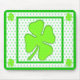 Este clip art é um desenho de uma shamrock. A folha é um verde opaco com bolinhas em branco com um fundo verde. Uma borda ao redor da folha é um limão e verde escuro. Bolinhas verdes são adicionadas com um fundo branco. Foi adicionada uma borda cintilante verde. Este mouse pad faz um excelente adicional para sua casa ou escritório. Mantenha o fundo branco ou mude para qualquer cor que você quiser.