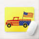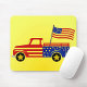 Um mousepad ousado e temático da América com um caminhão estrelado e fundo amarelo brilhante - perfeito para adicionar um toque festivo e patriótico a qualquer espaço de trabalho