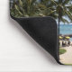 Caminho pelas palmeiras até a praia no oceano em um mouse pad.