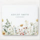 Este design apresenta uma borda de aquarela de flores silvestres em tons de vermelho, dourado, verde e azul. Personalize com seu nome e informações comerciais.