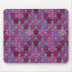 Este mouse pad tem um design de tulipas de deco de arte de pentágonos e trapezoides em diferentes tons de roxo.