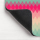 A imagem é um padrão geométrico, repetitivo, com formas de diamante sobrepostas (rhombus) dispostas em faixas horizontais. Os diamantes são cheios de um gradiente de cores pastel macio: pintas vívidas, verdes mudados e cremes pálidos. A semirtransparência de cada forma cria aberturas interessantes e um estilo retrormoderno e visualmente calmo. A simetria e a repetição dão-lhe uma sensação rítmica e harmoniosa — é atraente e dinâmica enquanto permanece equilibrada.