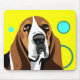 Arte canina de Basset Hound em fundo amarelo com círculos