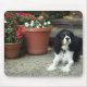 Um Spaniel de rei Charles descuidado bonito com algumas flores bonito.