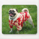 Um cão do Pug em uma camisa havaiana vermelha. o modelo é Buddha o Pug, você pode segui-lo em Facebook!