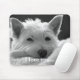 Se você ama cães, você amará estes mousepad/mousemat. Há uma imagem preto e branco de um cão adoreable de Westie (montanhas Terrier branco ocidentais) na parte dianteira do mousemat/almofada com as palavras "eu te amo…" na rotulação branca apenas debaixo da imagem principal. Este mousepad é o presente perfeito para essa pessoa especial em sua vida. É um grande aniversário, presente de Natal para alguém especial.