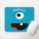 Da cara azul do monstro dos miúdos tapete do rato engraçado personalizado. Personalize à cor do fundo da mudança. Personalize com nome acima deste divertimento um eyed, um monstro dentado. Grande presente para amantes do monstro.