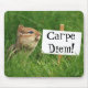 O chipmunk pequeno bonito está pronto "apreende o dia" ao lado de um sinal que leia: Carpe Diem! Totalmente customizável para que você personalize como você por favor!
