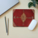 Melhore seu espaço de trabalho com um mouse pad inspirado pela beleza eterno dos tapetes tradicionais. Com um rico fundo vermelho e um intrincado padrão geométrico, o design é ancorado por um medalhão central em forma de diamante. Flandres por flechas simétricas, simbolizando a proteção e a direção, este mouse pad adiciona um toque de sofisticação cultural e, ao mesmo tempo, fornece uma superfície suave e durável para uso diário.