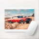 Mousepad Carro Muscular Vermelho na grama.