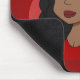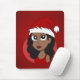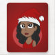 Design com uma ilustração de uma bela jovem africana americana com o chapéu de Papai Noel, design de Natal em fundo vermelho, por Radka Kavalcova