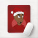Design com uma ilustração de feliz sorriso de um homem afro-americano com o chapéu de Papai Noel; design de Natal por Radka Kavalcova