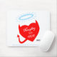 Curioso Split Personality Naughty Nice Cartoon Heart Mouse Pad, com um coração único com chifres vermelhos e um anjo azul faz um belo segundo presente ou um gafanhoto para sua esposa ou namorada.