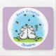 Estas ovelhas bonitinhas são cercadas por borboletas com uma borda rosa e roxa e desenhadas num estilo de desenho animado feliz.