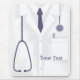 Um design de casaco de laboratório médico gráfico em um porta-voz personalizado.